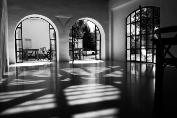Historická stodola nabízí autentický prostor s původními architektonickými prvky, vysokými stropy a dřevěnými trámy.